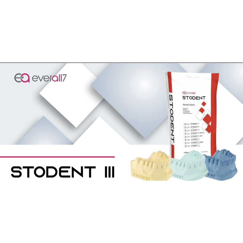 A Stodent III egy III. osztályú keménygipsz, amely antagonista és munkamodellek készítésére szolgál kivehető és fémvázas fogsorokhoz és termoplasztikus műfogsorok öntéséhez.